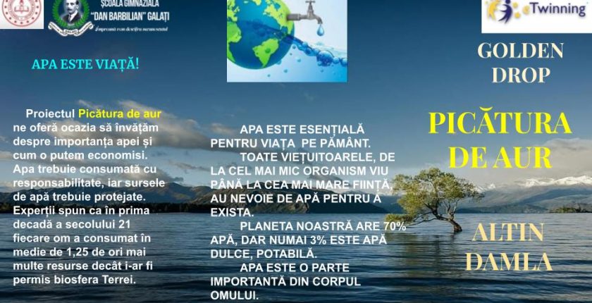 Proiectul internaţional „GOLDEN DROP-PICĂTURA DE AUR-ALTIN DAMLA”, proiect eTwinning, este coordonat de doamna prof.înv.primar Epure Florentina Cristina şi realizat de clasa pregătitoare A. Proiectul este în parteneriat cu 10 şcoli din Turcia. Elevii învaţă despre importanţa economisirii apei. În acelaşi timp, îşi dezvoltă competenţele STEAM prin realizarea de experienţe cu apa.