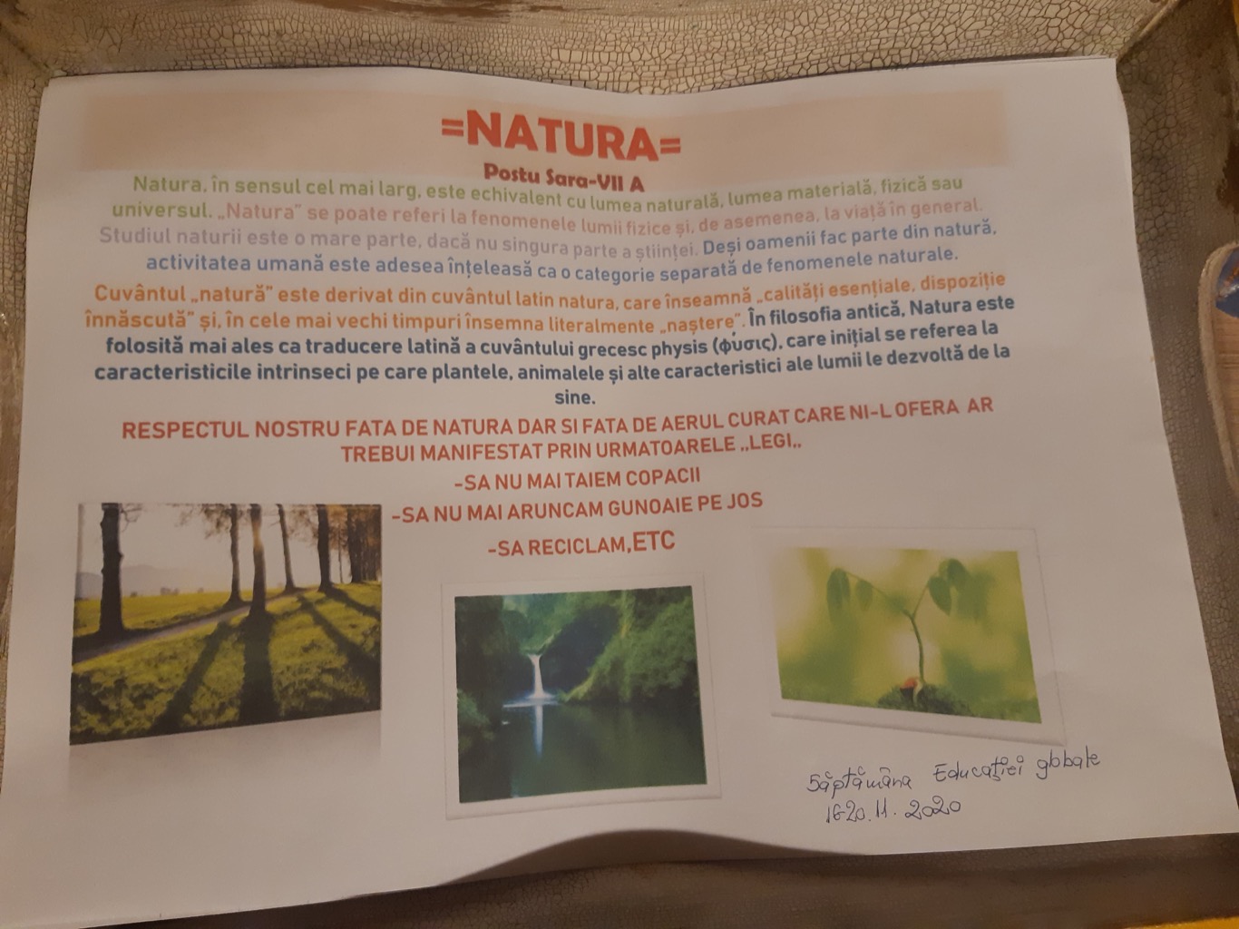 În acest an, Săptămâna Educației Globale va avea loc în intervalul 16-20 noiembrie 2020. Elevii clasei VII-a A au luat-o înainte și au realizat o serie de lucrări cu această temă.